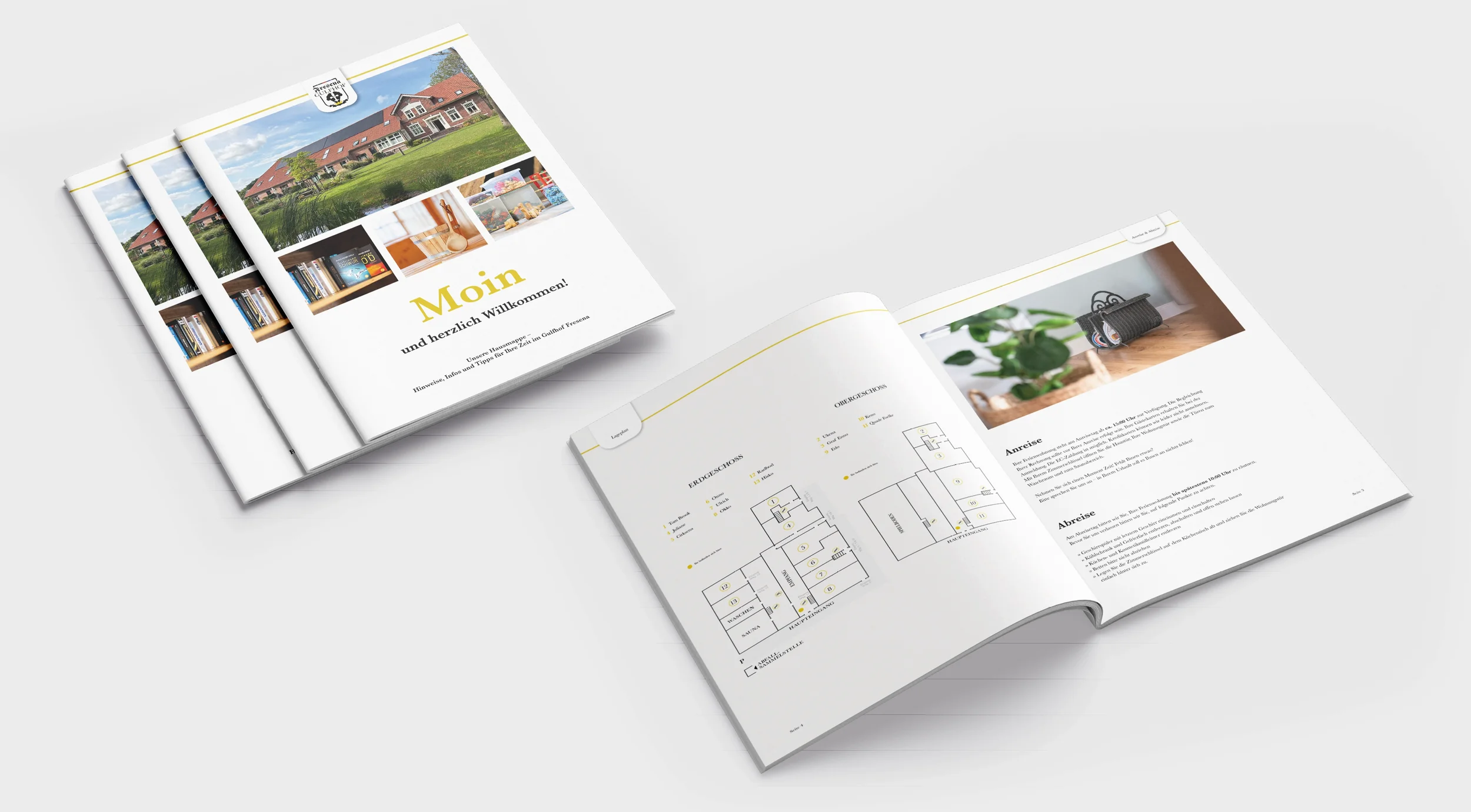 Im Rahmen der Überarbeitung habe ich bestehende Inhalte und Elemente übernommen und gezielt weiterentwickelt. Ergänzt wurde die Mappe durch neue Fotografien, die den Charakter des Gulfhofs authentisch widerspiegeln und die Inhalte visuell unterstützen.